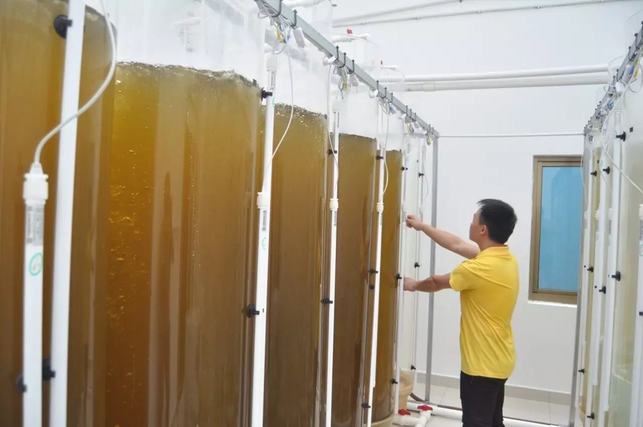 “我们先从海南总部拉幼体过来进行实验,严格按照总部的标准育苗,成功后再引进种虾。经过今年上半年的运转,我们已经捋顺从种虾养育、幼体孵化、藻类培育、质量检测等各个环节,目前已有1000对种虾进驻基地生产。从现在的情况来看,无论是产卵率、孵化率、出苗率,相比海南都有过之而无不及。我们的出苗率平均达到5成多,说明我们的想法是成功的。目前已有优质虾苗上市,预计今年销量可达到7-8亿尾。”